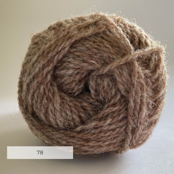 Close up of the end of a ball of wool in a soft marled brown