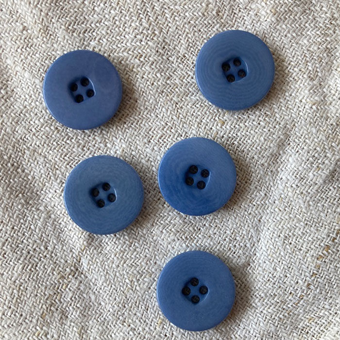 Mid blue buttons on a linen background