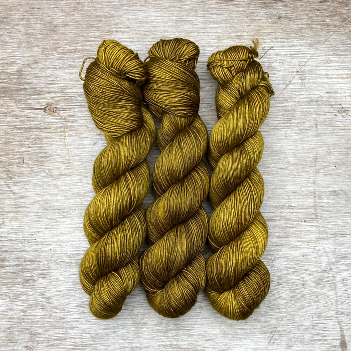 Three skeins of soft silky wool in an acid yellow green