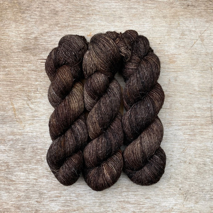 Three skeins of merino and linen in a in dark brown and grey