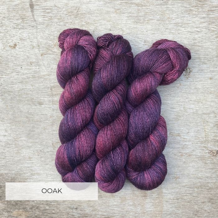 Three skeins of Merino & Silk in purple and plum