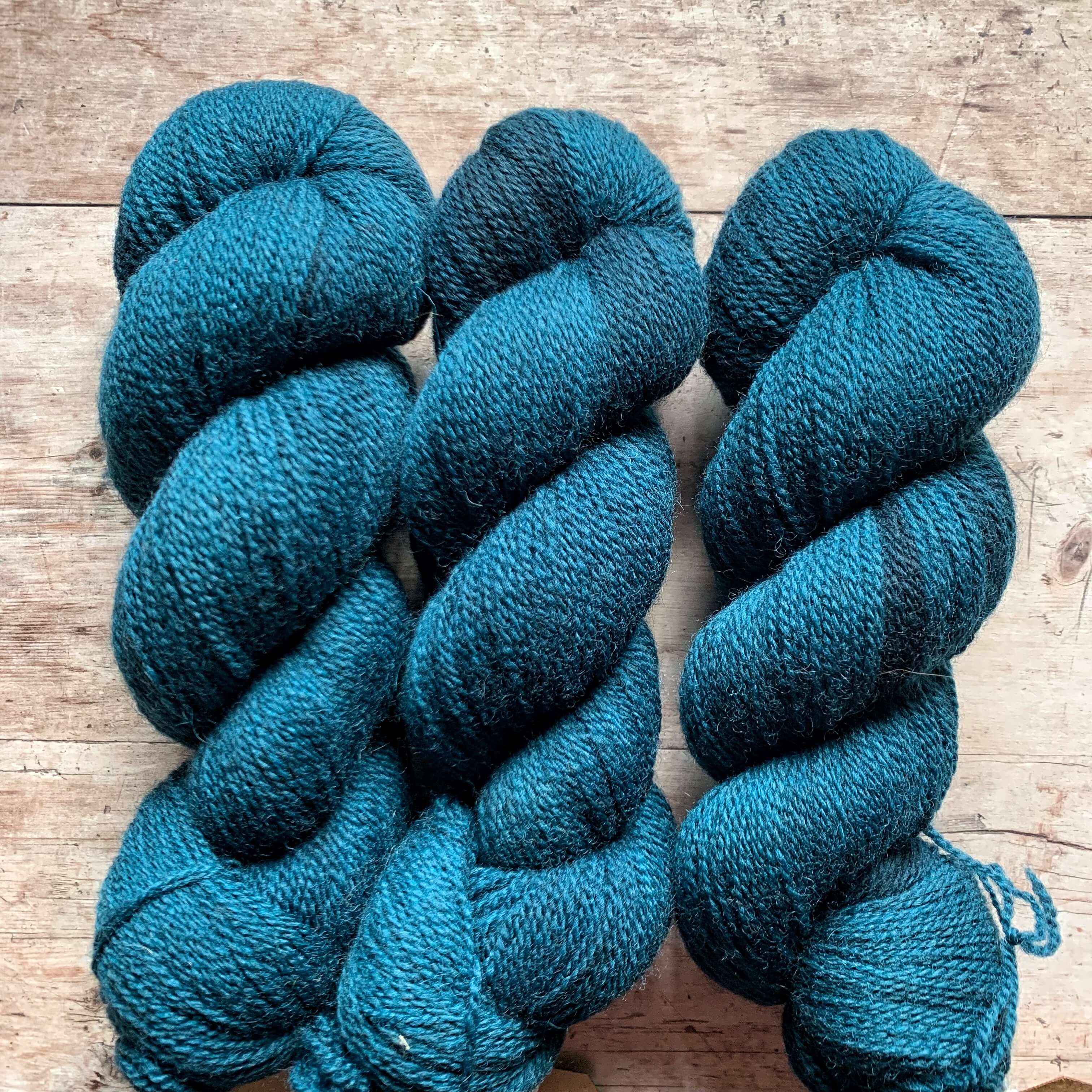 Two skeins of deep teal 4ply wool