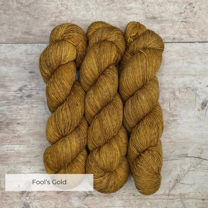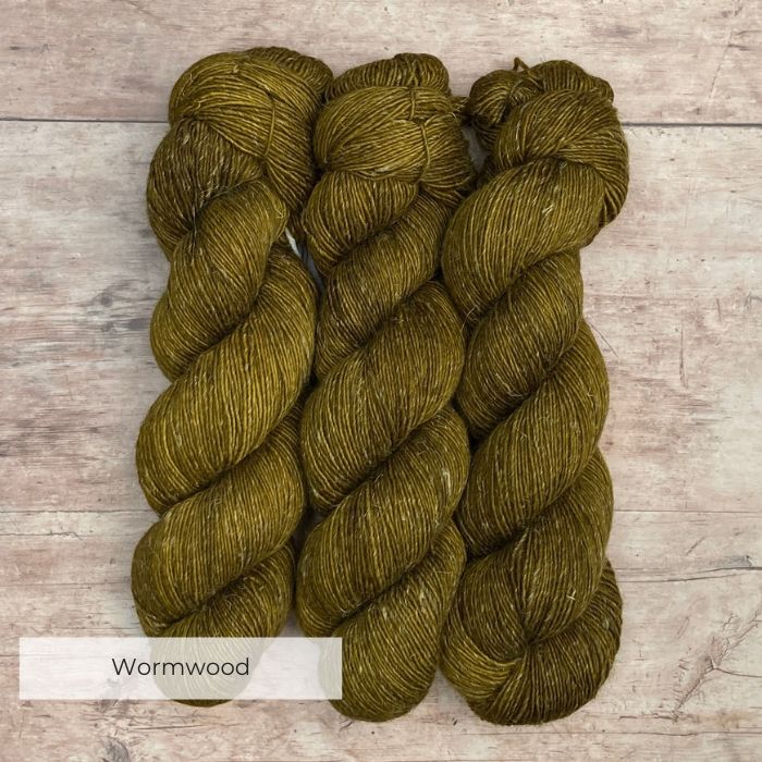 A single ply yarn in merino and linen hand dyed by us in small batches. The yarn is incredibly soft with strands of un-dyed linen which resists the acid dye and give a light tweedy look. A fantastic choice for garments and accessories.