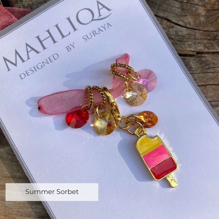 Mahliqa stitch markers designed by Surya and handmade in London.