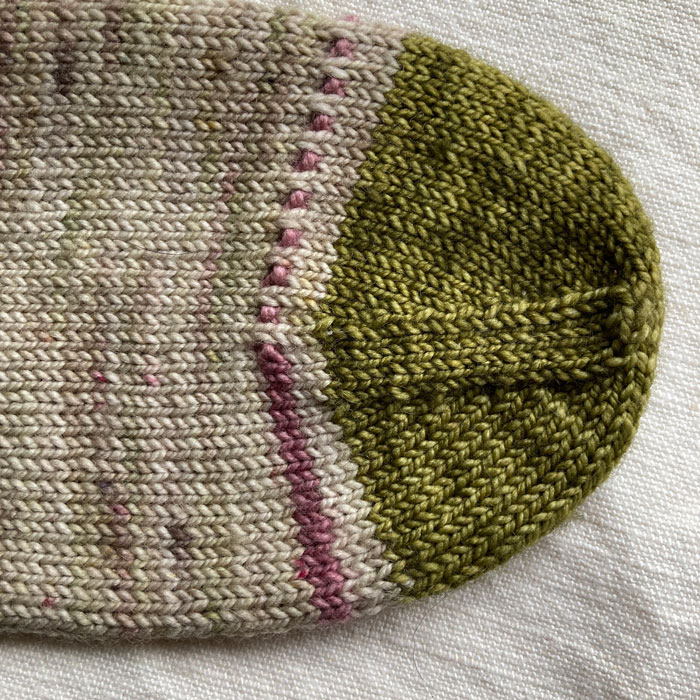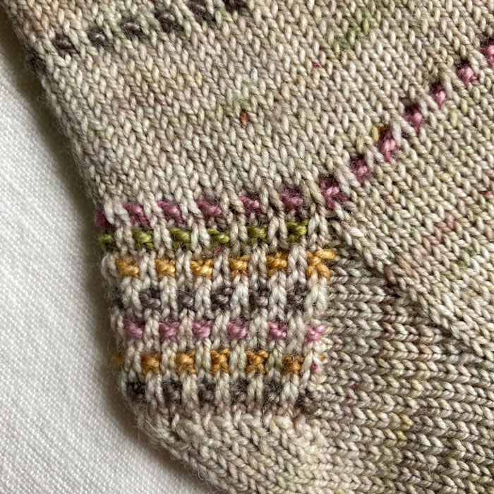 The socks were designed with a fingering weight Ainsworth & Prin Sock Set with two contrast colours.