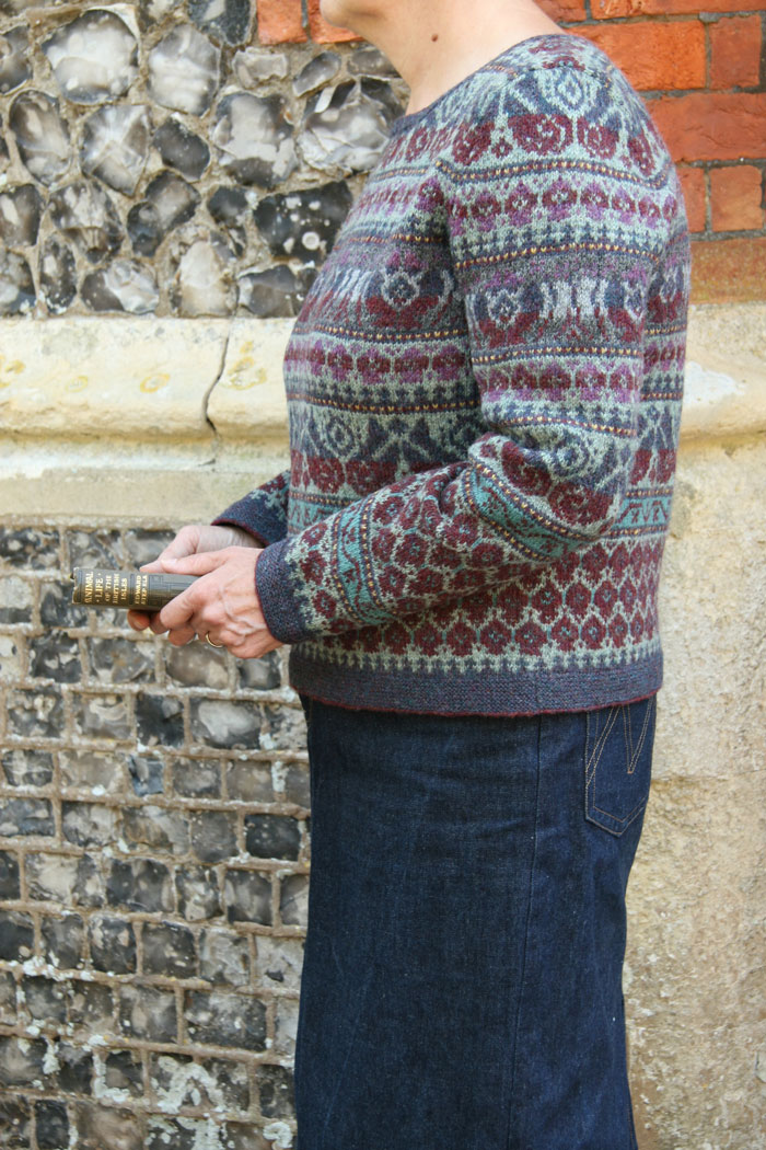 Skills: knitting in the round, knitting colour work flat, reading colour work charts, three needle cast off, seaming.