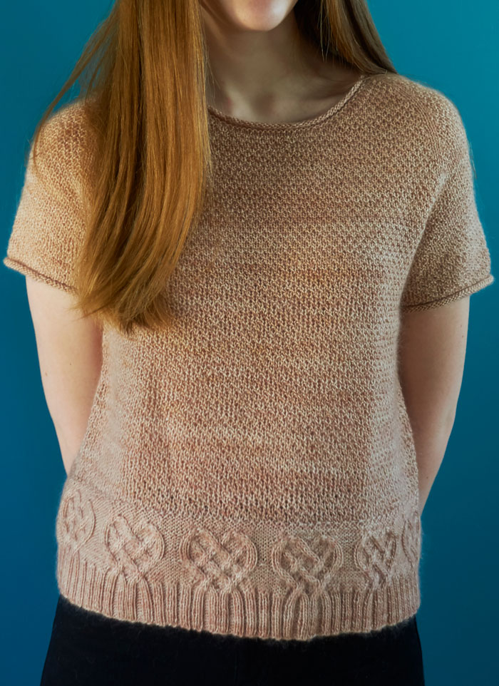 Samples knitted in Rose Chiffon (pale) and Tiger Eye (dark)